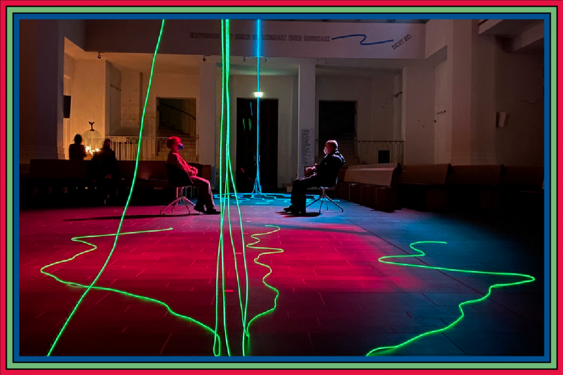 Novarina: 12 Originalzeichnungen und 9 Radierungen von Valère Novarina, aus einem gemeinsam mit der Druckkünstlerin Marie-Sol Parant realisierten Künstlerbuch. Reflexion In Sync/Out of Sync: von Claudia Robles-Angel. Eine Installation, die das Unsichtbare sichtbar und das Unhörbare hörbar macht. Lichtblickspiegel: Interaktive KI-Installation von MIREVI welche nicht die Gegenwart zeigt wie sie ist, sondern interpretiert, wie sie sein könnte. Queue: Eine spielerische XR-Erfahrung. In dieser interaktiven, audiovisuellen Zeitlupe für XR-Reality und Multiplayer-VR entwirft die hybride Arbeit einen scheinbar dystopischen Nicht-Ort, eine Schattenwelt im Übergang zum Ungewissen. Physarum: Generativer Algorithmus, interaktives Projektionsmapping von RaumZeitPiraten. Eine digitalisierte Lebensform lädt die Besucher*innen dazu ein, Teil eine kollektiven Organismus zu werden. Relate – Talk with me: Eine Interaktive KI-Videoinstallation von Andrea Familari. Wie prägt unsere Beziehung zur Technologie unsere Beziehungen zu anderen Menschen?