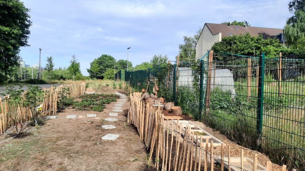 Im Frühjahr und Sommer 2025 wurde an der Ecke Vereinsstraße/Uhlandstraße in Eppinghofen – auf der den Bewohnergärten vorgelagerten Fläche – ein Mustergarten für Insekten angelegt. Auf rund 100 Quadratmetern ist eine kleine Oase für Wildbienen, Schmetterlinge, Käfer und andere Tiere entstanden. Der Garten zeigt, wie wichtig Grün- und Brachflächen für den Natur- und Artenschutz in der Stadt sind. Im Mustergarten gibt es Staudenpflanzungen, eine Hecke, Insektenhäuser, ein Totholzbiotop, einen Käferhaufen u.v.m. Eine Sitzecke aus Baumstämmen und ein Barfußpfad laden Bürger*innen jeden Alters zum Verweilen ein.