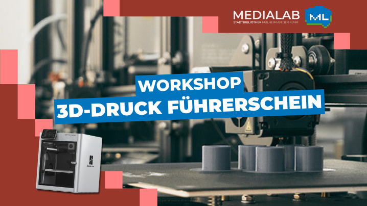 Dieser ermöglicht die eigenständige Nutzung des 3D-Druckers „BambuLab X1-C“ im öffentlichen Bereich der Stadtbibliothek Mülheim an der Ruhr (1.OG des MedienHauses).