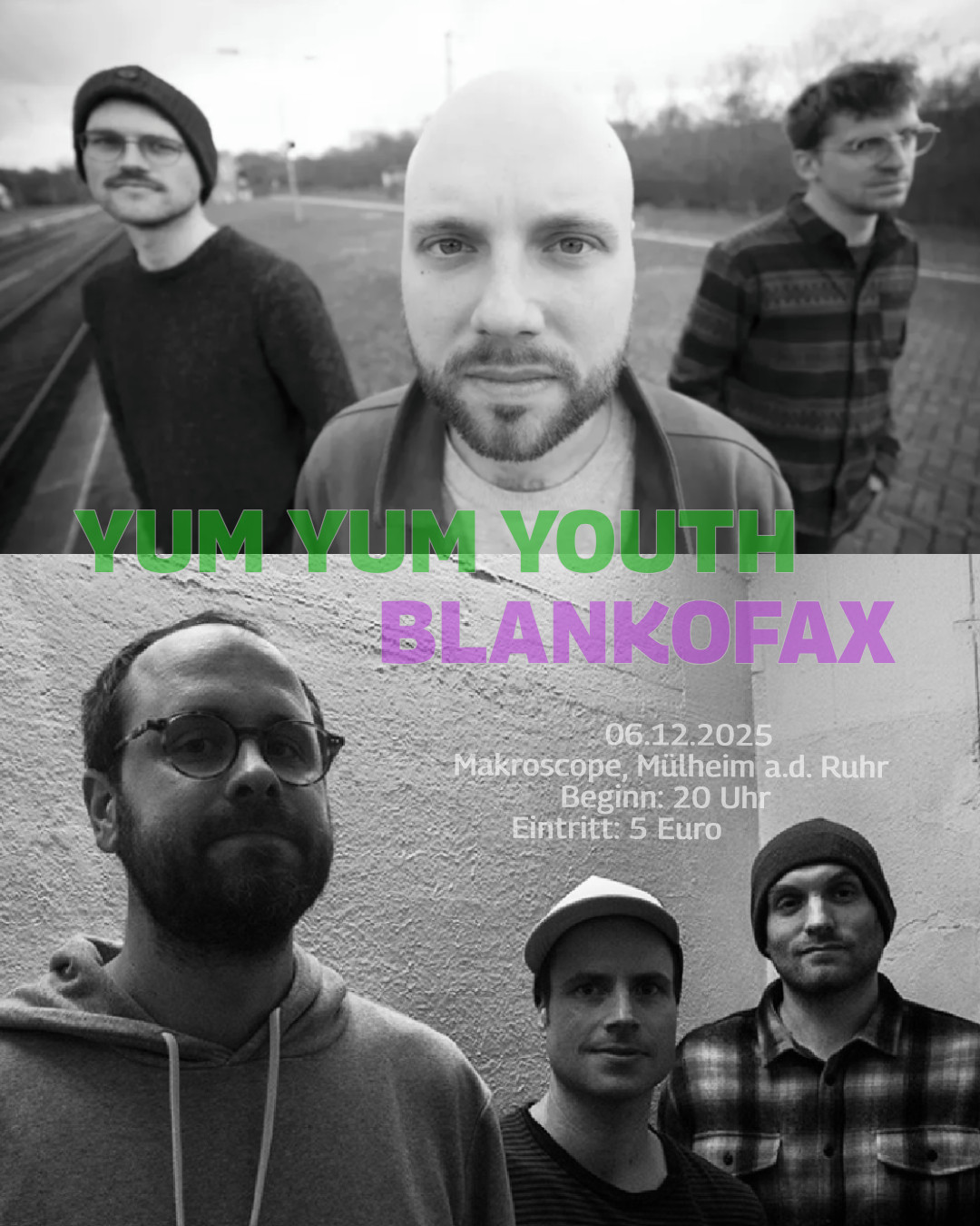 Yum Yum Youth aus Wuppertal verbinden Shoegaze mit verträumtem Indie Rock, um Themen wie Selbstzweifel und Resignation musikalisch einzufangen. Mehrstimmige Gesangsmelodien, Gitarrenbäder und ein kraftvolles Rhythmusfundament kreieren gemeinsam einen atmosphärischen Klangteppich. Mit dem Debütalbum "Niemals mein Zuhause" (2025) nehmen sich Yum Yum Youth Zeit und Raum für einen vielschichtigen und organischen Sound. So schaffen die drei Herren mit lakonischen Texten ihren Depri-Pop.#