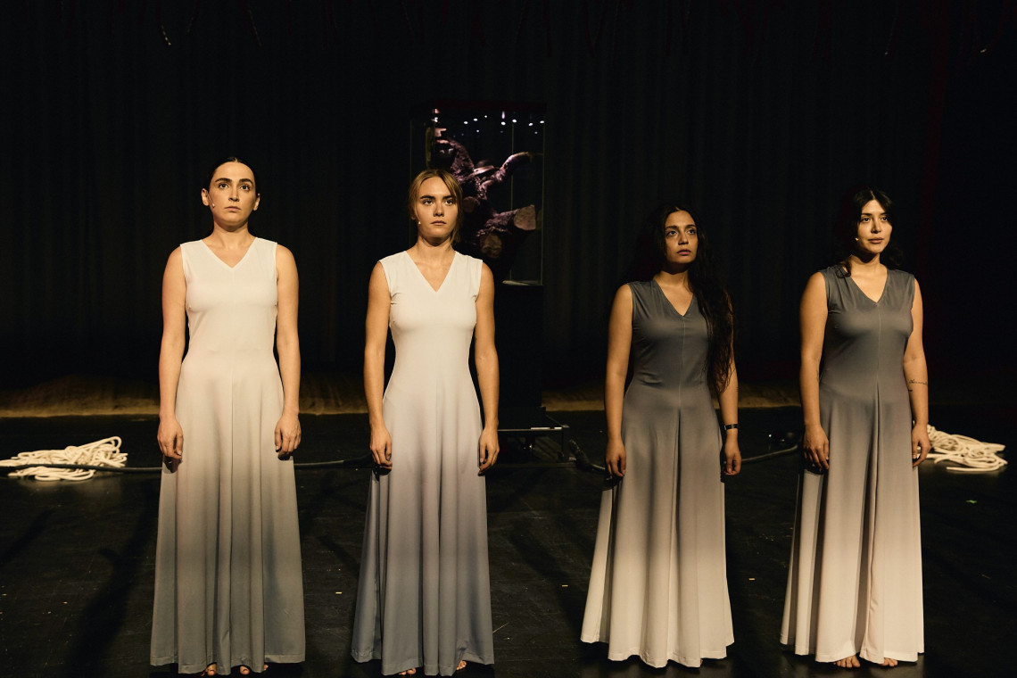 Genau wie Mohammad Rasoulof selbst waren sie gezwungen, den Iran zu verlassen. In Berlin am (vermeintlichen) Ziel, durchlaufen die Schauspielerinnen ergänzt um ihre Kollegin Eli Riccardi in der Inszenierung die Stationen ihrer Flucht. Woran orientiert man sich, wenn man die Schranken der ständigen politischen Kontrolle verlässt? Worauf besinnt man sich zurück, um anzukommen in der eigenen Freiheit? Rasoulof entwirft Bilder einer Reise, in der Ziel und Ausgangspunkt verschwimmen.