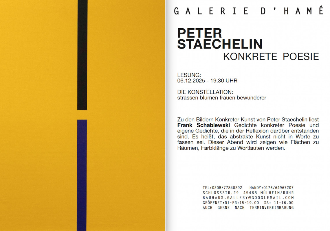 Zu den Bildern Konkreter Kunst von Peter Staechlin liest Frank Schablewski Gedichte konkreter Poesie und