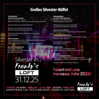Silvester 2025 im Franky’s LOFT – feiert mit uns ins neue Jahr!