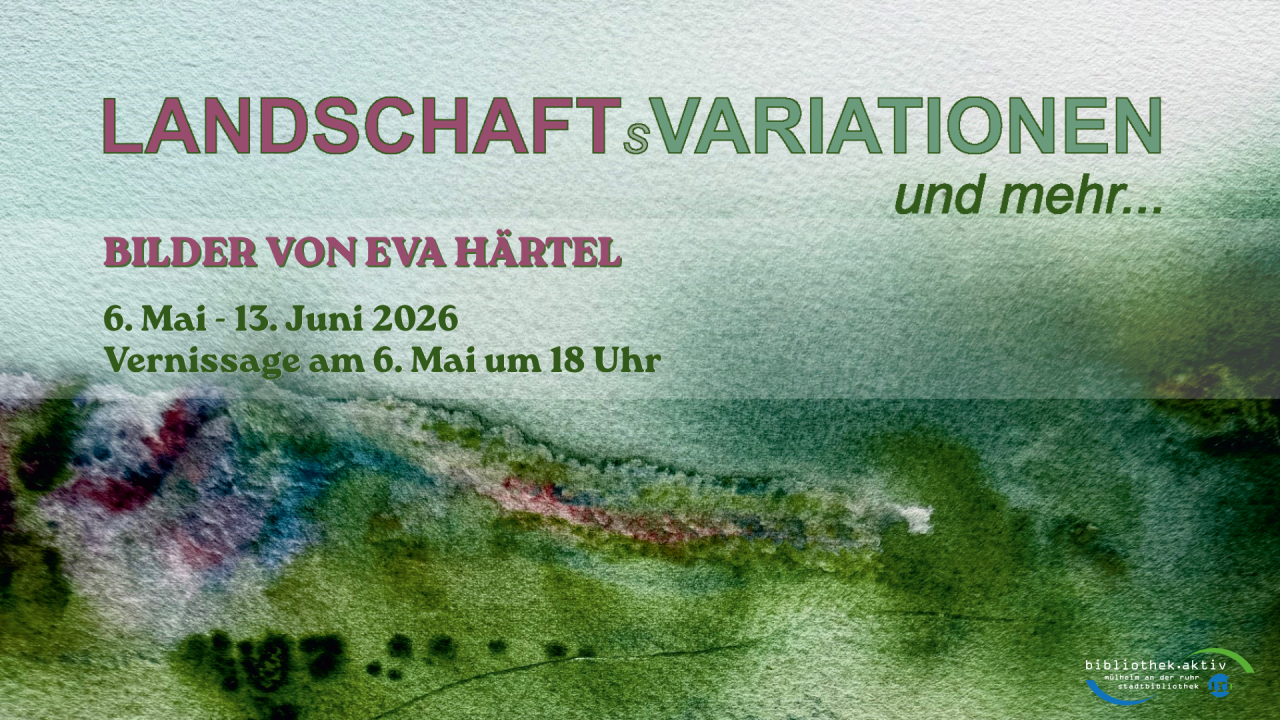 Die Vernissage am 6. Mai 2026 um 18 Uhr in der Stadtbibliothek im MedienHaus bildet den Auftakt zur Ausstellung „Landschaftsvariationen und mehr" mit Bildern von Eva Härtel. Nach der Vernissage ist die Ausstellung bis zum 13. Juni 2026 während der regulären Öffnungszeiten der Stadtbibliothek im MedienHaus zu besichtigen. Der Eintritt zur Vernissage und der Ausstellung ist frei. Öffnungszeiten der Stadtbibliothek im MedienHaus: montags bis freitags von 10 bis 18:30 Uhr samstags von 10 bis 14 Uhr